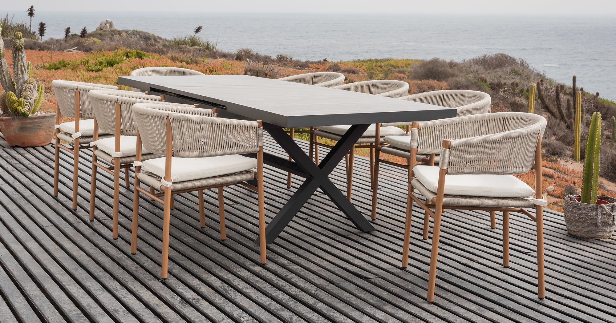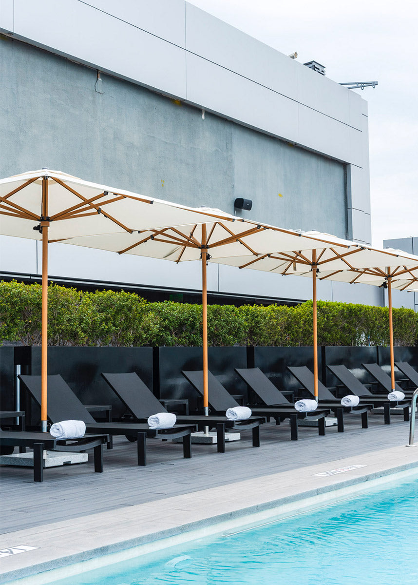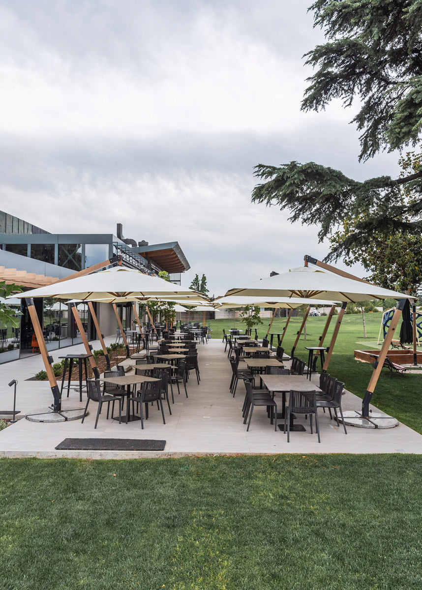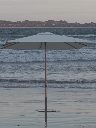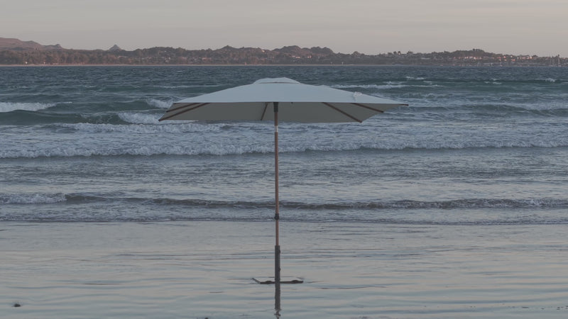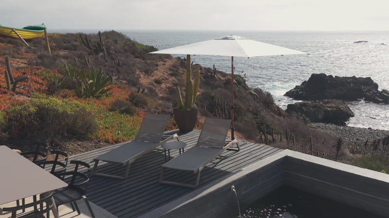 El quitasol cuenta con una estructura de aluminio 5001 con recubrimiento de pintura en polvo color antracita, ideal para ambientes salinos.