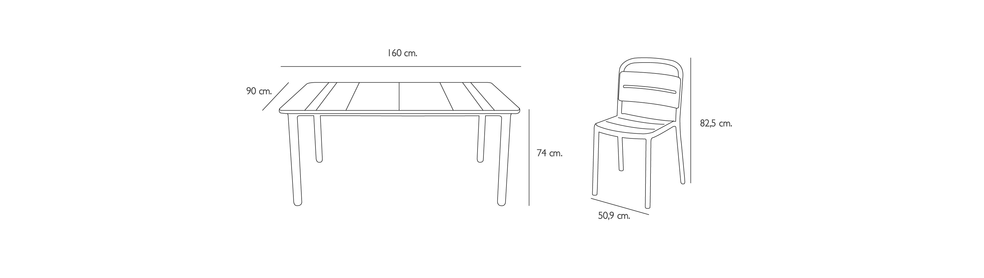 Mesa de Terraza Noa 160 + 6 Sillas Como
