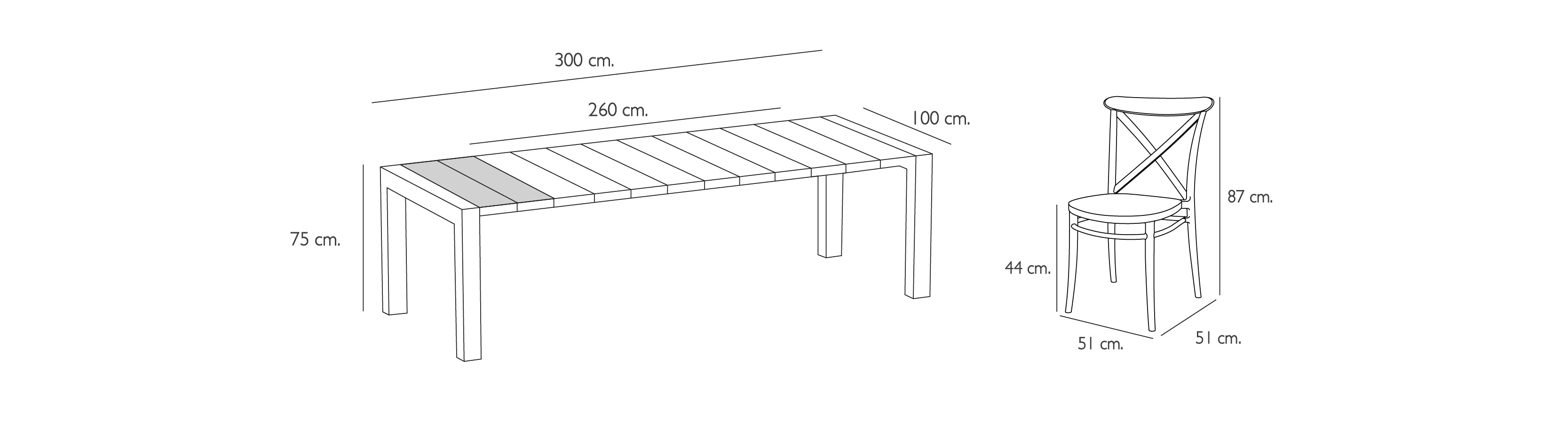 Mesa de Terraza Vegas XL + 10 Sillas Cross