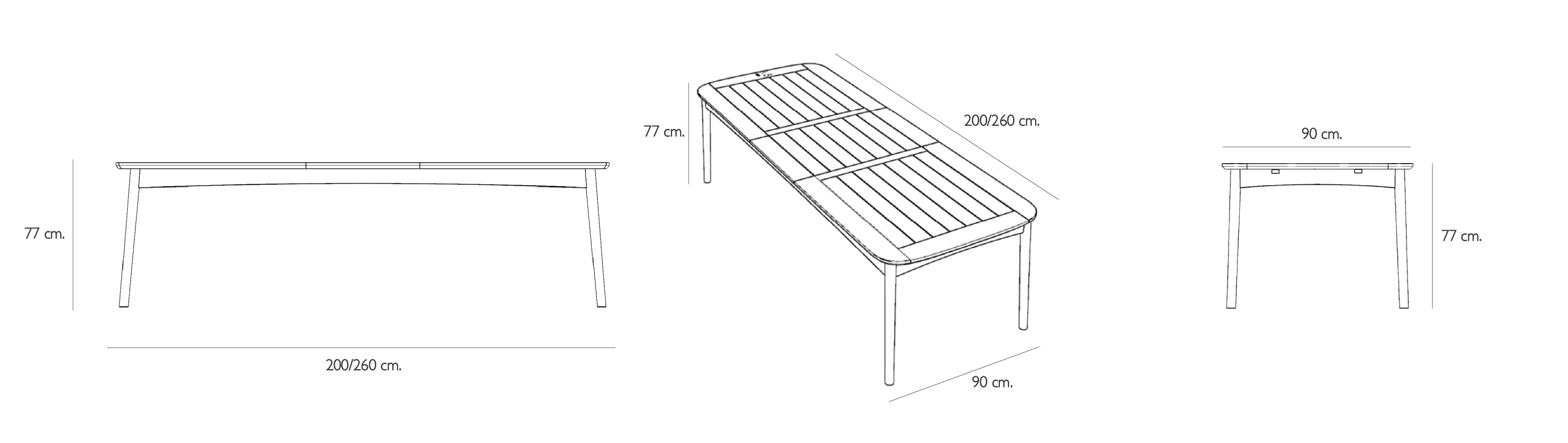 | Tamaño (LxWxH) | 200/260 x 90 x 77 cms. |
