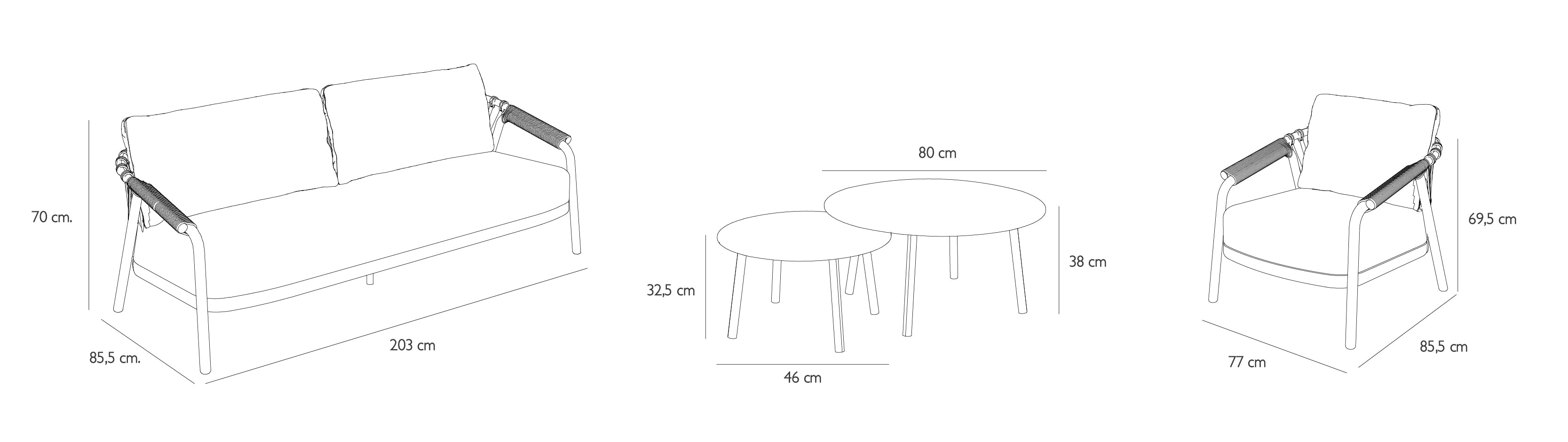 | Tamaño Sofá 3 cuerpos | 203 x 70 x 85,5 cms. |