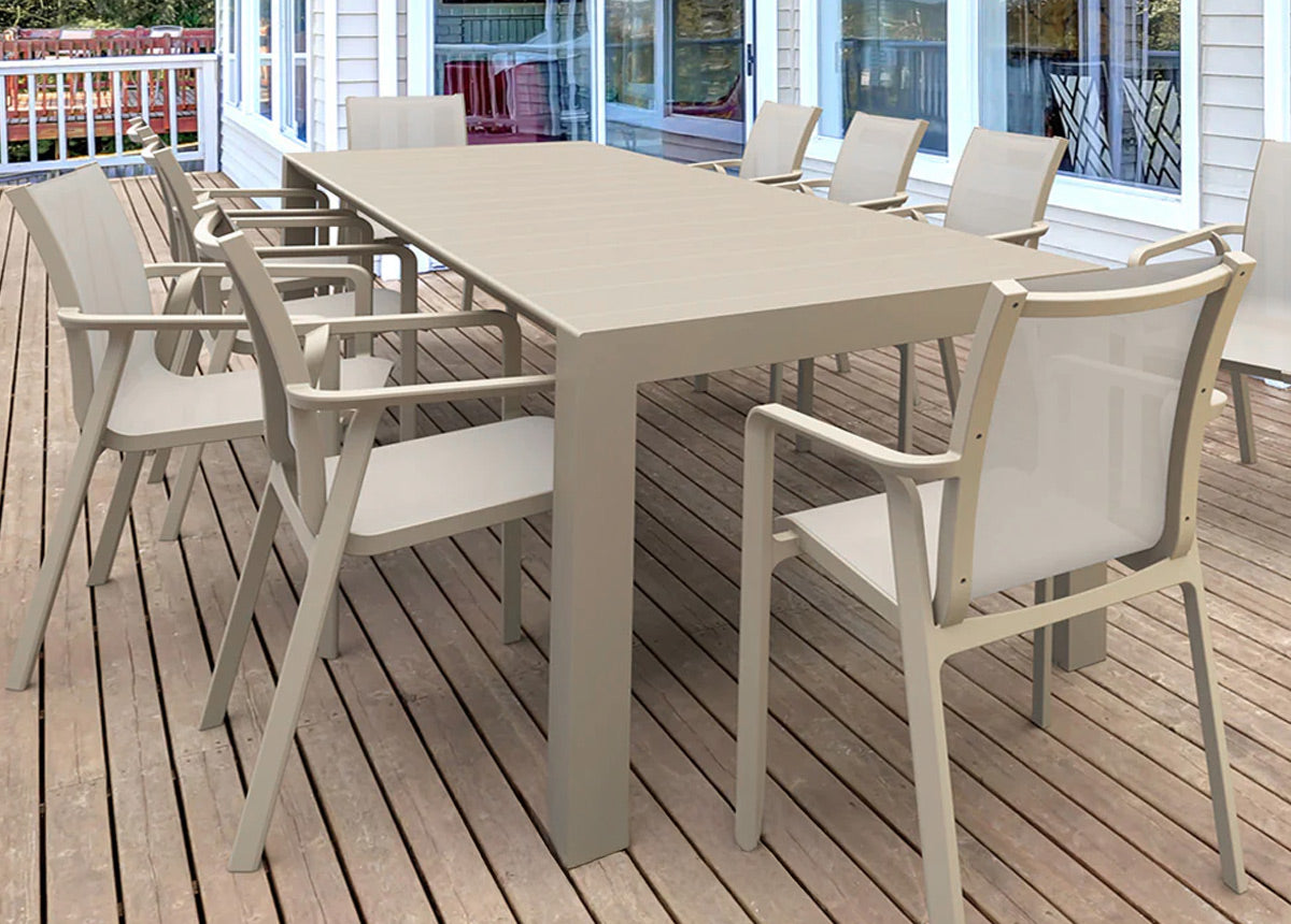 La Mesa de Terraza Extensible Vegas XL 260/300 es sinónimo de funcionalidad elegante. Diseñada para quienes disfrutan compartir grandes momentos, su estructura sólida y resistente permite extenderla con fluidez, adaptándose a encuentros íntimos o celebraciones numerosas. Fabricada con materiales de alta calidad, es perfecta para exterior: duradera, imponente y lista para ser el centro de cada reunión inolvidable.