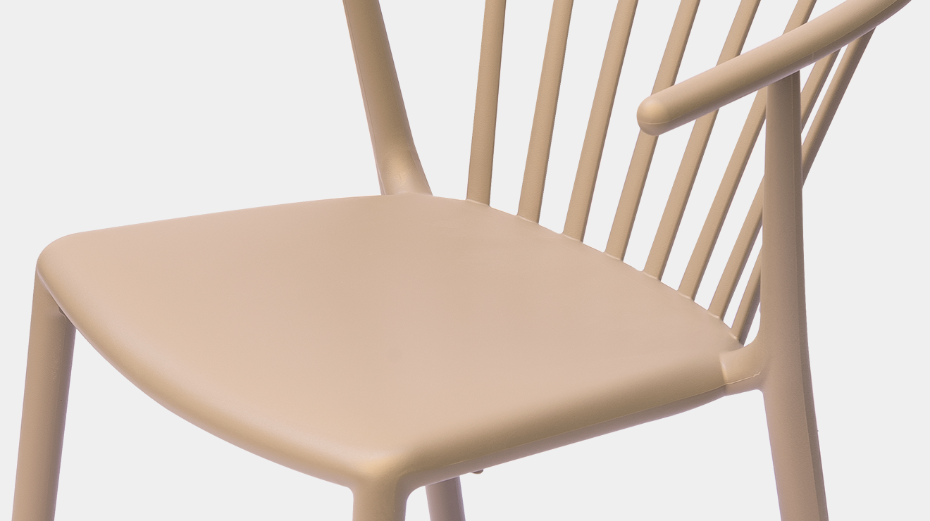 El polipropileno es un material altamente resistente y funcional para muebles de exterior, ideal para enfrentar la exposición al sol, la lluvia y la humedad sin deteriorarse.