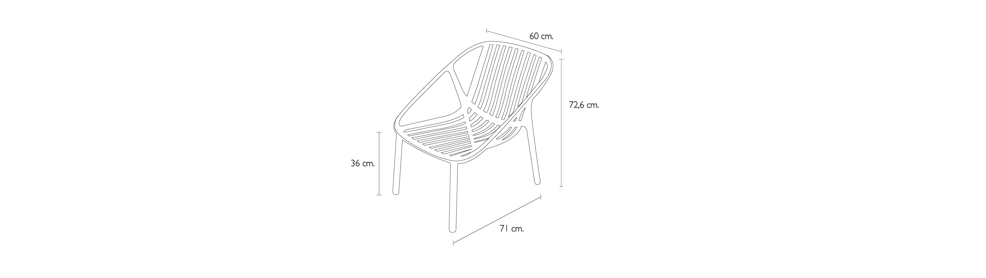 La Silla Bini Lounge de Joan Gaspar, formalmente nos remite a las sillas de caña, retenidas en la memoria a lo largo de los años. La revisión de este concepto ha sido la base para crear una colección de diseño que contiene la opción de sillón bajo con sus respectivas mesas redondas adaptadas en altura, para que le des una nueva vida a la terraza de tus sueños.